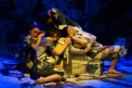 This new work, a world, a world, is a visually arresting dance for seven dancers: claire barrera, Muffie Delgado Connelly, Nancy Ellis, Hannah Krafcik, Danielle Ross, Noelle Stiles, and Austin. It drops the viewer into the same, saturated, arena-like environments that the dancers themselves inhabit. The work offers an immersive experience that is an amalgamation of movement, sound, image, and language. a world, a world continues through January 25. Seating is limited because it is built into the set—there are 30 seats total each night.