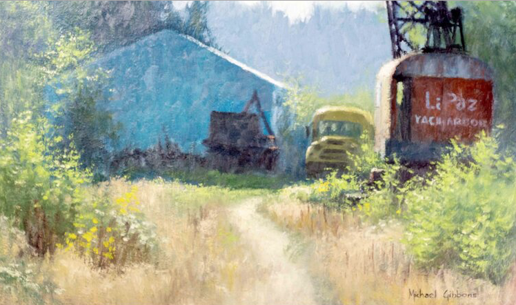 Indeed, the land and waters around him, including the nearby Pacific Ocean, formed the basis of his artwork, which he created in his downtown Toledo studio in an 1887 building that began its life as a Methodist church. He painted many natural scenes and also scenes of industrial life along and near the Yaquina River, including barge and railcar manufactories and the local containerboard mill. “Michael enshrined Toledo’s blue-collar culture in art,” Rob Cross, the city’s mayor, said.